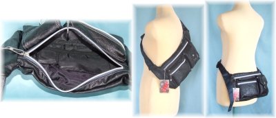 模様入りの合皮素材にシルバーのファスナーが特徴的なオシャレなウエストバッグです。合皮素材なので少々の水ならはじいてくれ、お手入れも簡単です。4つのポケット付きで分類収納に便利!レジャーやお散歩など普段使いに重宝するバッグです!