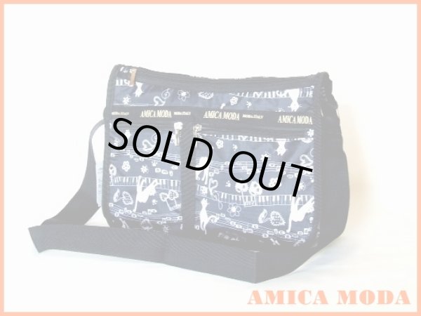 猫・五線譜・ピアノ鍵盤・音符がプリントされたミュージックモチーフの癒し系デザイン!ファスナーでマチ幅が広がる便利な拡幅機能付き。普段使いに重宝する、使い勝手の良い2室式ショルダーバッグです。