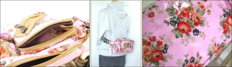 【18%off】【メール便ok】ラミネート加工花柄ウエストバッグ(4色有)