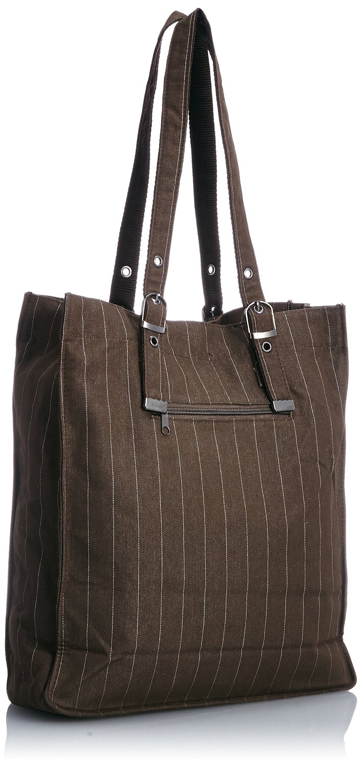 持ち手長さ調節可能ピンストライプトートバッグ茶 [4Y81]