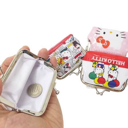 サンリオの人気キャラクター『ハローキティ』のキュートながま口ポーチです。小銭やアクセサリー、キャンディーやお薬など、小物の収納に便利です。
