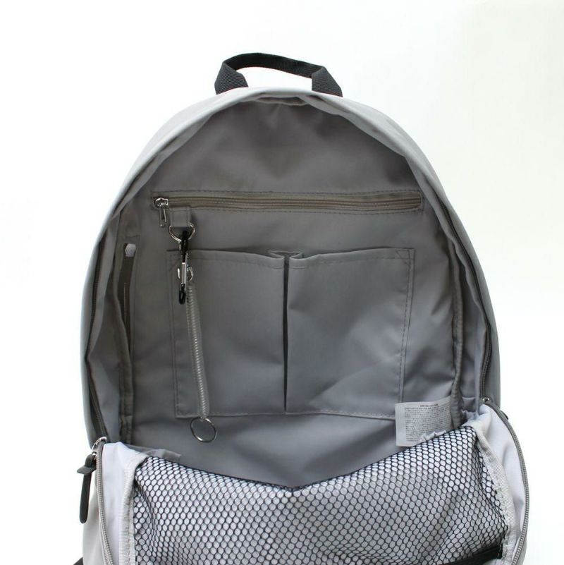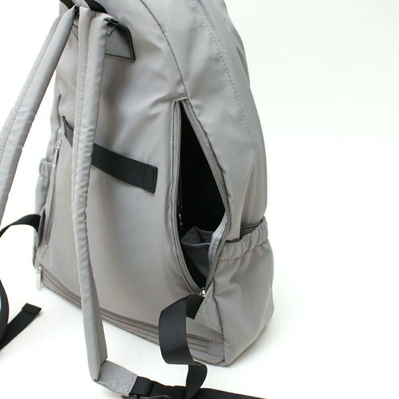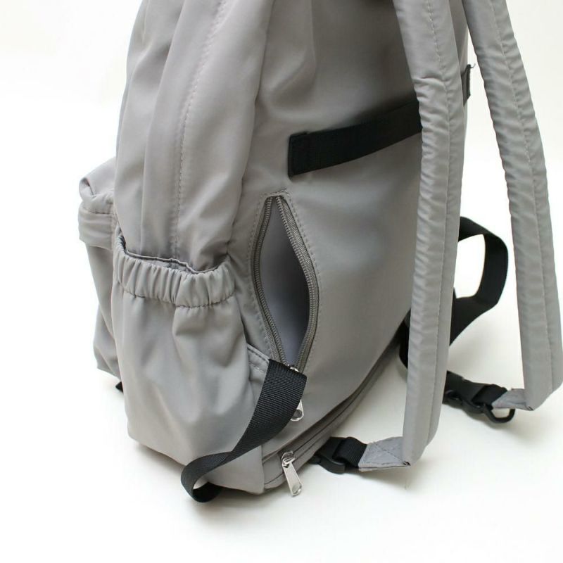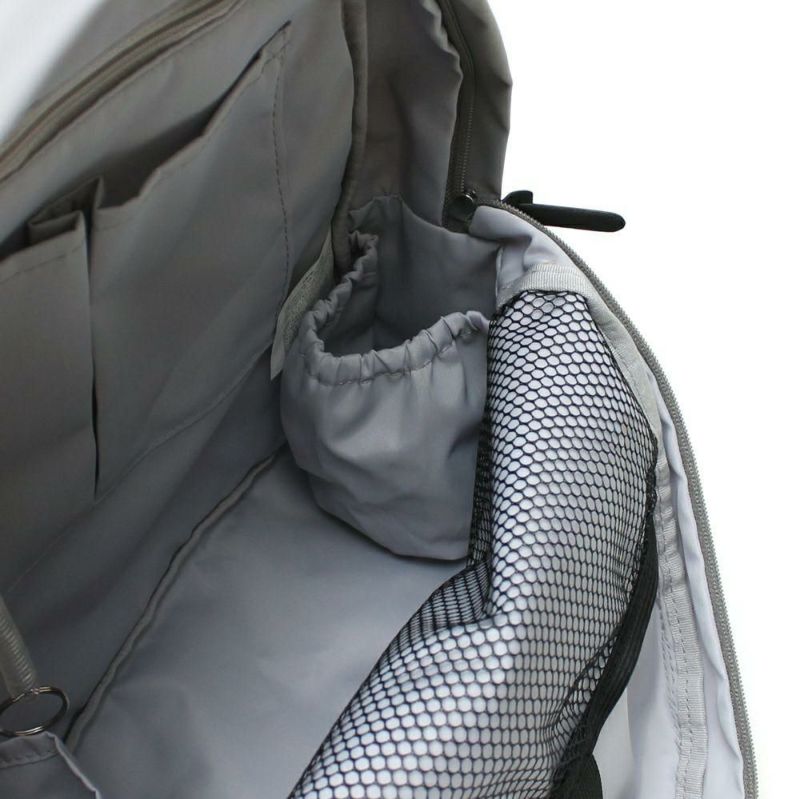 軽量・撥水・抗菌・防臭・ポケット11個付き。ママの負担を軽くをコンセプトに誕生した機能的なリュックサックです。ペットボトルや折りたたみ傘を縦に収納できるボトルループやギャザーポケット、お子様の靴やオムツなどの収納に便利な防水ポケットなど11個のポケット付き。旅行先で便利なカート差し込みベルトやカラビナストラップ付き。背面やショルダーは肉厚クッション仕様。家族でシェアしやすいシンプルなデザインと使いやすさがギュッと詰まった多機能リュックサックです。