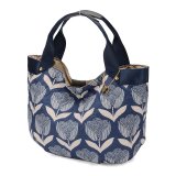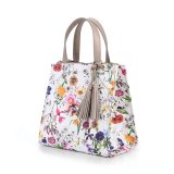 鮮やかな花柄が目を引く華やかで上品な3室式手提げバッグ/プリント柄B-ホワイト