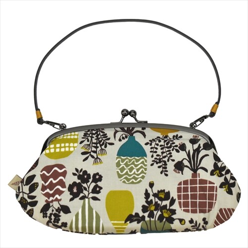 花と花びん柄がおしゃれながま口2WAYショルダーバッグです。コンパクトで使いやすく身軽にお出かけできるサイズ感。内側中央にがま口、その両サイドに仕切りポケットで5つのスぺ―スに。長さの異なる2種類のベルトが付いて手提げにも、ショルダーバッグとしても使える2way。外側にはポケットが付いて必要なものがさっと取り出せます。コーデのアクセントになるデザインで旅行の際のサブバッグやお散歩、和装にもおすすめです。