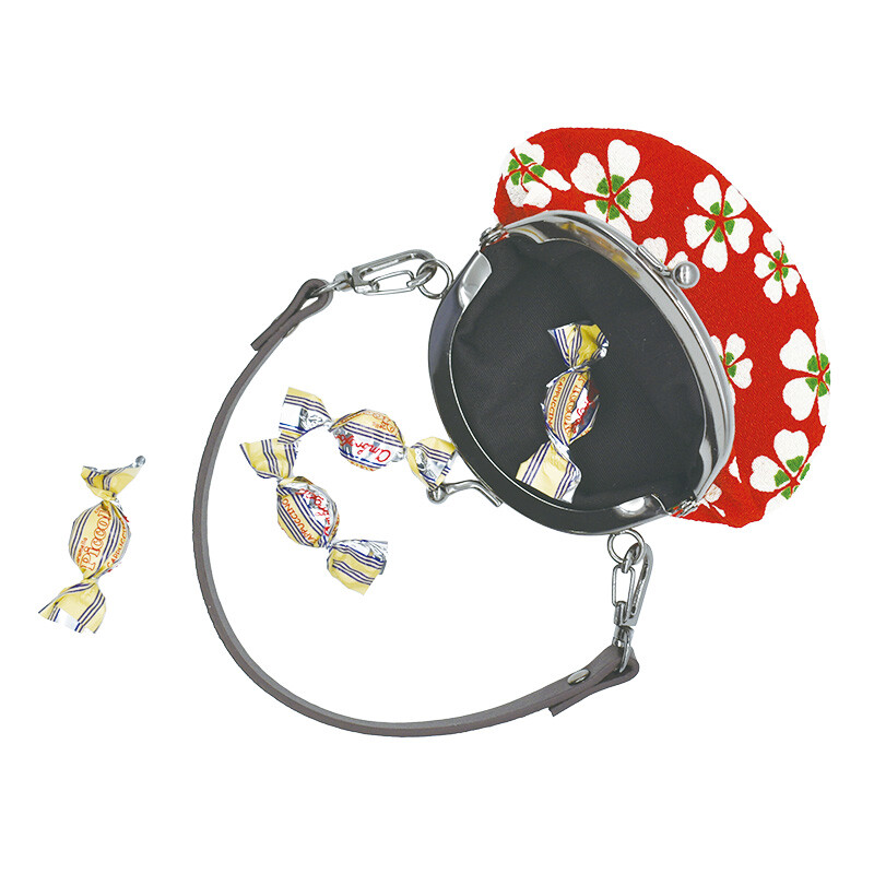 小桜柄が可愛いストラップ付き手のひらサイズの丸がま口財布です。ストラップが付いているため、トートバッグの持ち手に付けると、便利で可愛らしさが増します。アクセサリーやワイヤレスイヤホンなどの収納、小銭入れとして重宝します。実用性も兼ね備えた一品です。手のひらサイズでかわいらしくプレゼントや海外へのお土産にも喜ばれます。