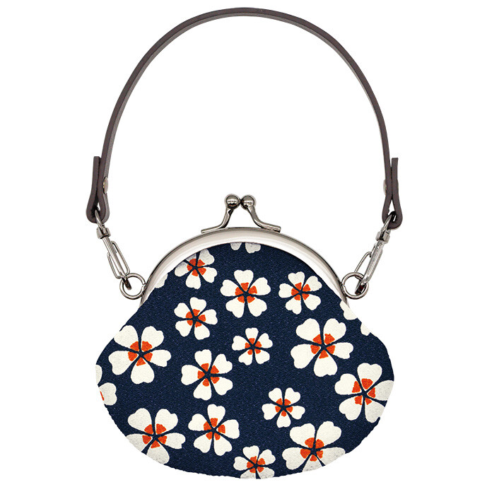 さくら柄が可愛いストラップ付き手のひらサイズの丸がま口財布小桜/ 紺