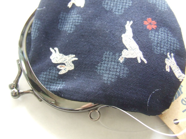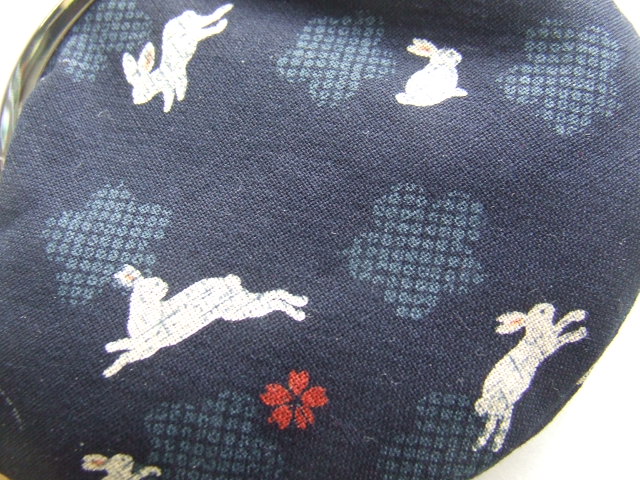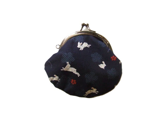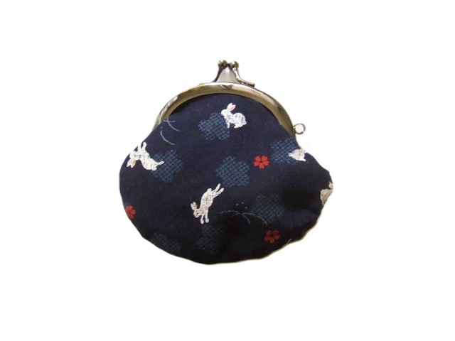 うさぎと桜の花びらが可愛い手のひらサイズのがま口財布/濃紺 [GA10AS-WL-DN]