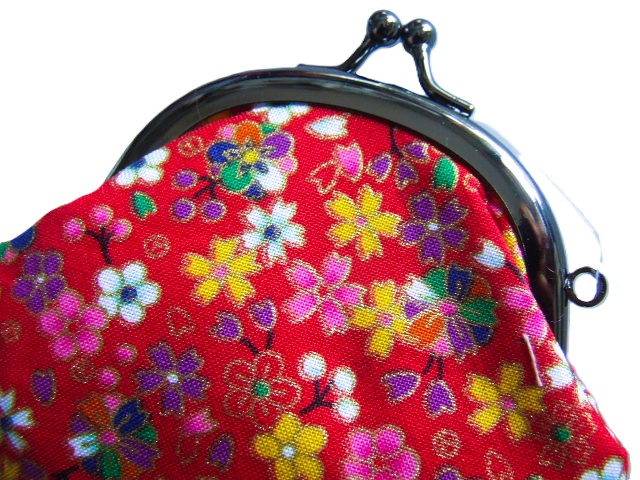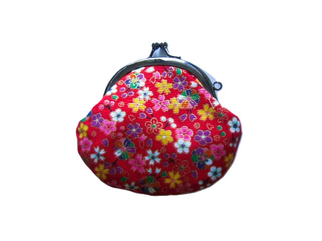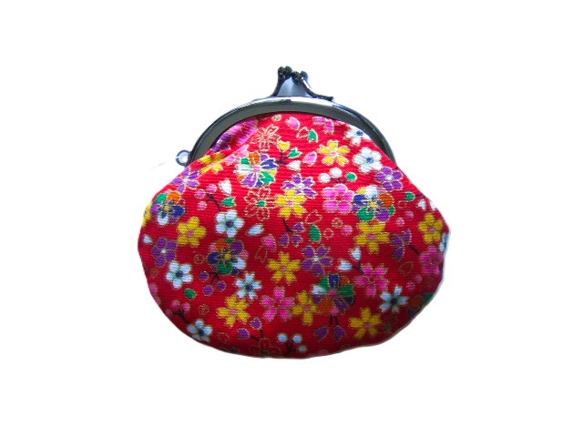 色鮮やかな小花柄が可愛い手のひらサイズの丸がま口財布/赤 [GA10AS-WL-RD]