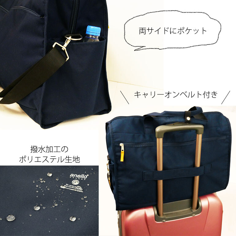 アネログランデ軽量撥水10ポケットキャリーオン2WAYボストンバッグ/紺